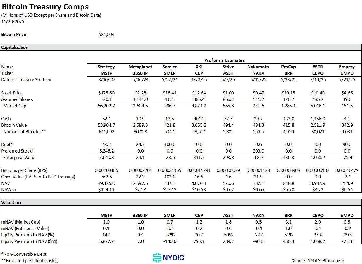A major source of structural bitcoin demand, the Digital Asset Treasury (DAT) complex, has meaningfully slowed and is now beginning to show early signs of reversal. For much of the cycle, DATs relied on the premiums at which their shares traded relative to net asset value (NAV). Those premiums were a powerful mechanism that allowed them to steadily accumulate more bitcoin per share by issuing stock and equity-linked instruments and buying crypto (at NAV).