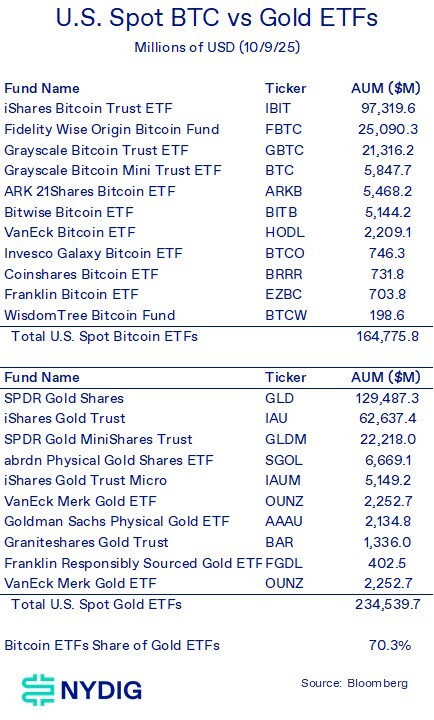Bitcoin ETFs Continue to Gain Ground on Gold ETFs